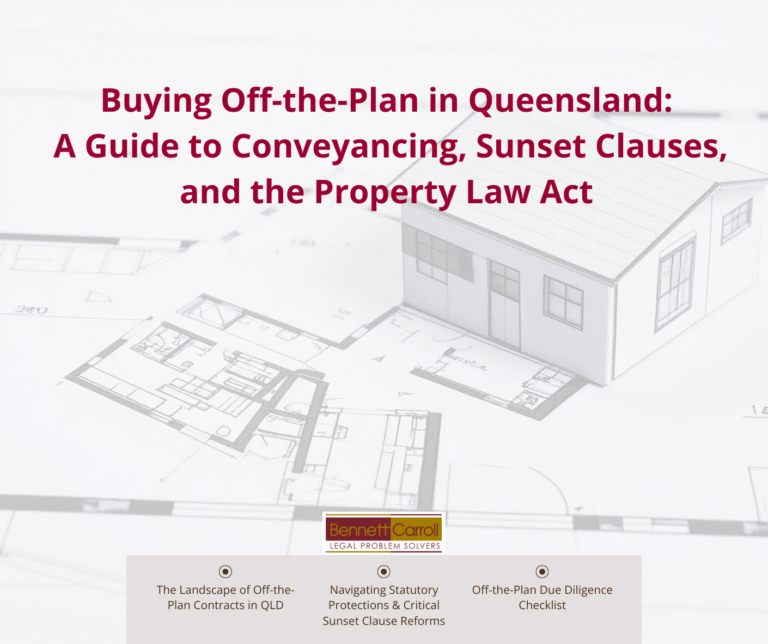 Buying off-the-plan can be a rewarding way to secure a new asset, but the length of the contract term combined with the legal and financial uncertainties demands a proactive approach. The new protections introduced in Queensland, particularly around sunset clauses, are designed to protect you, but they are not a substitute for having an experienced property lawyer by your side.